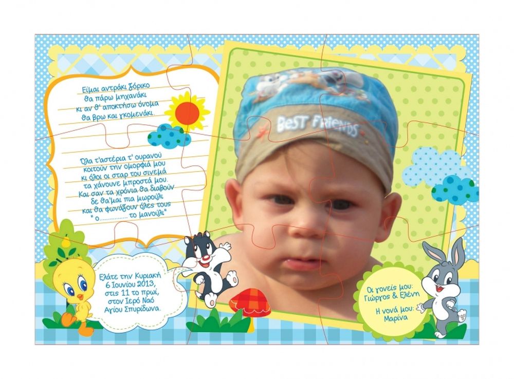 Προσκλητήρια βάπτισης παζλ -προσωπάκι