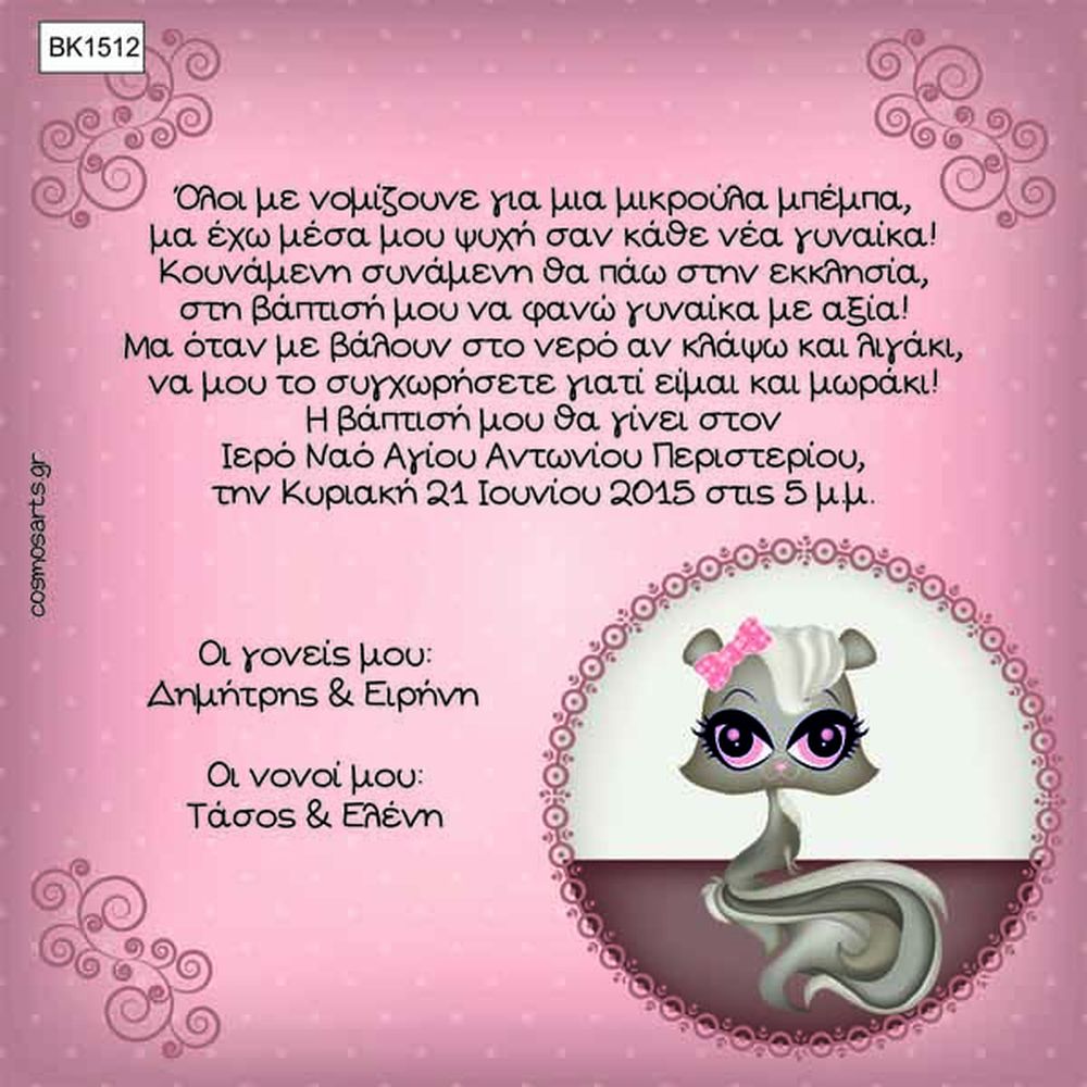 Προσκλητήρια Βάπτισης Κορίτσι -BK1520