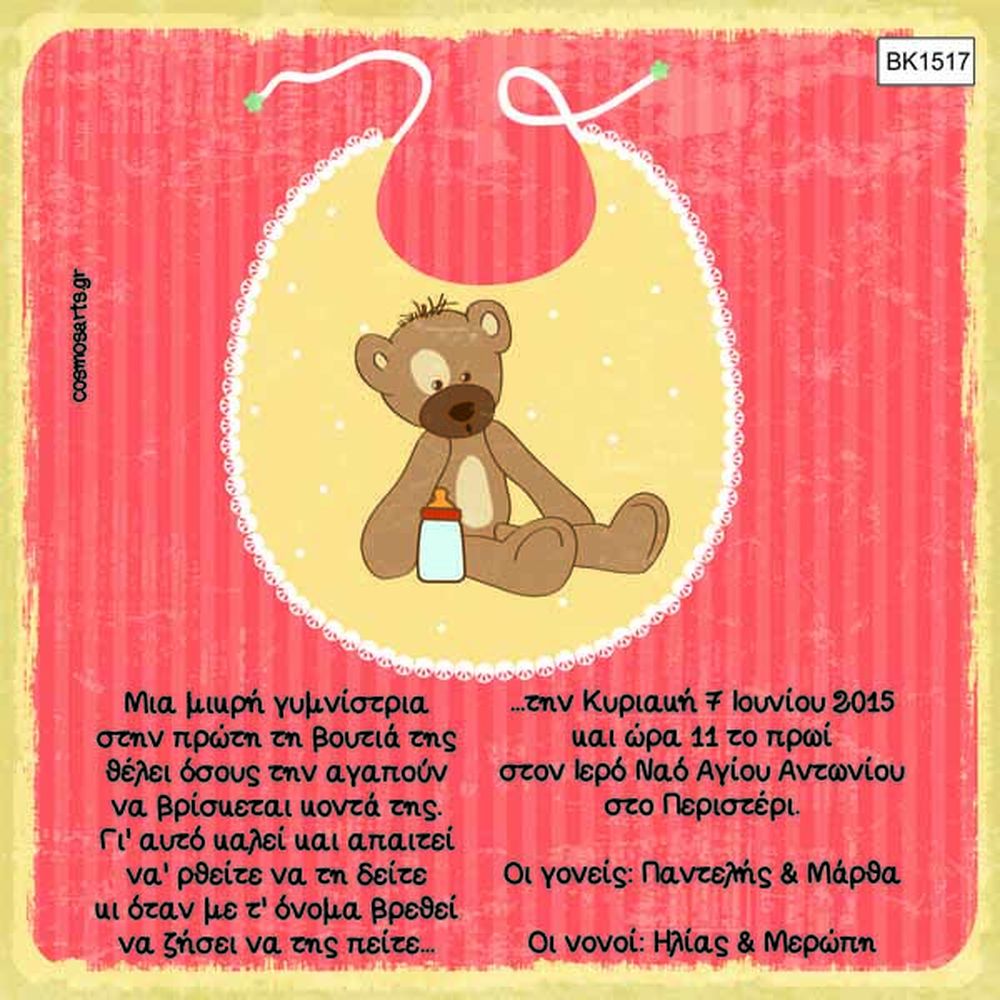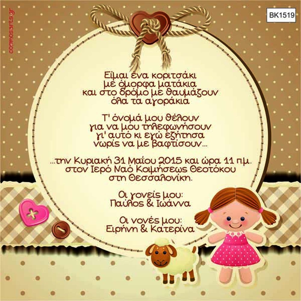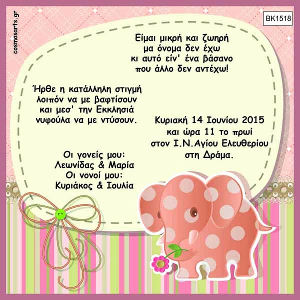 Προσκλητήρια Βάπτισης Κορίτσι -BK1519