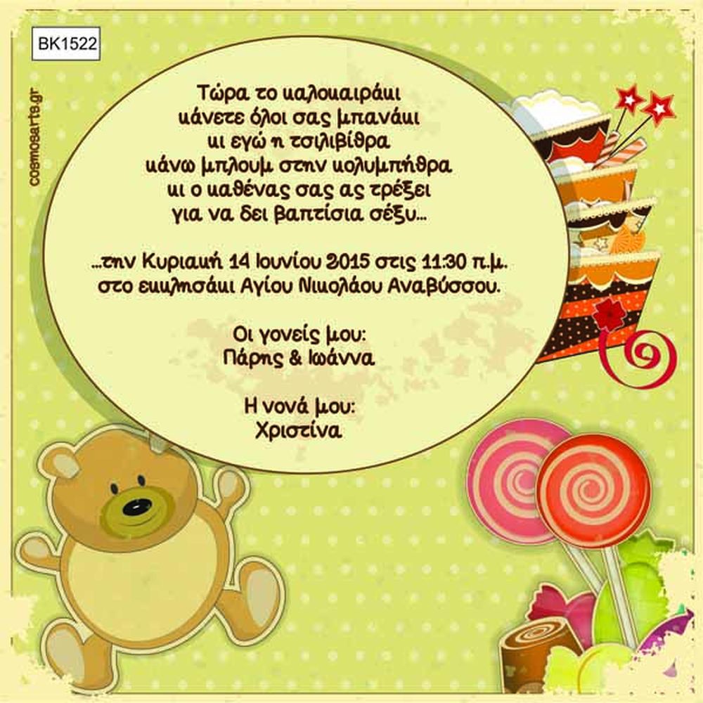 Προσκλητήρια Βάπτισης Οικονομικά -BK1512
