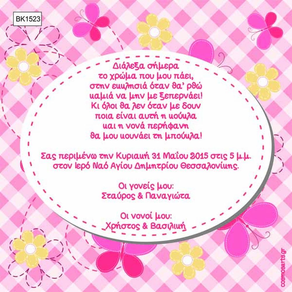 Προσκλητήρια Βάπτισης Κορίτσι -BK1523