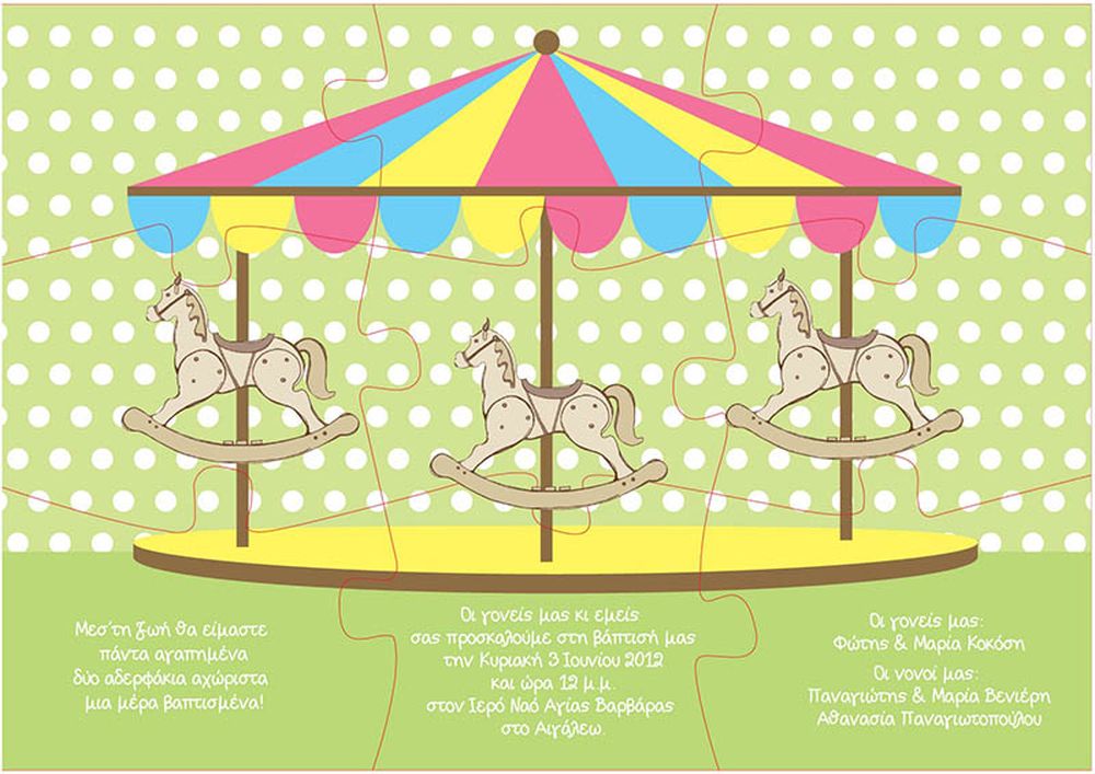 Προσκλητήρια βάπτισης παζλ -καρουσέλ