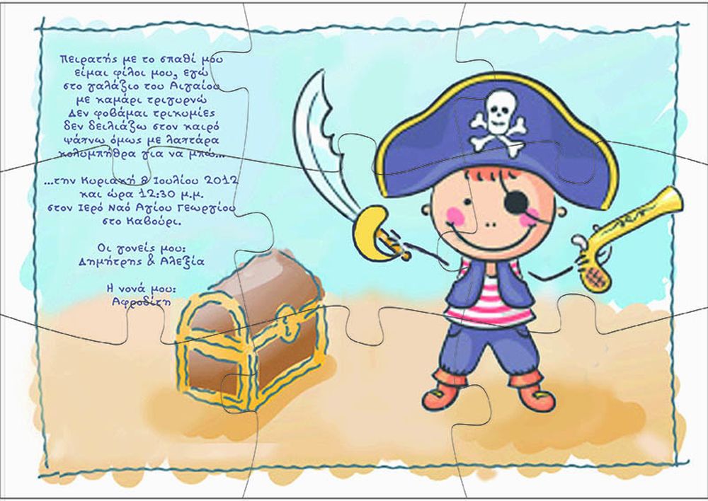 Προσκλητήρια βάπτισης παζλ -πειρατάκι