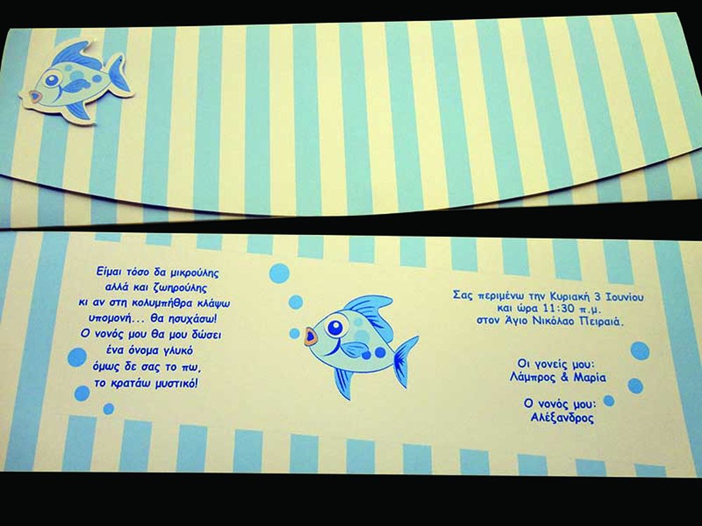 Προσκλητήριο βάπτισης ψαράκι -Β1278