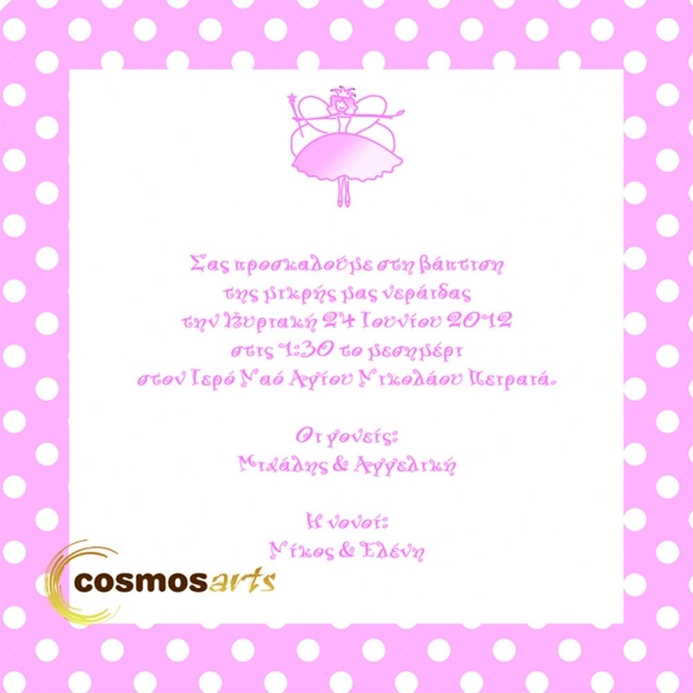 Προσκλητήρια βάπτισης κορίτσι -Β1241 ροζ πουά