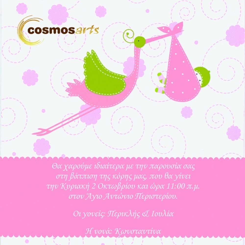 Προσκλητήρια βάπτισης κορίτσι -Β1243 πελαργός