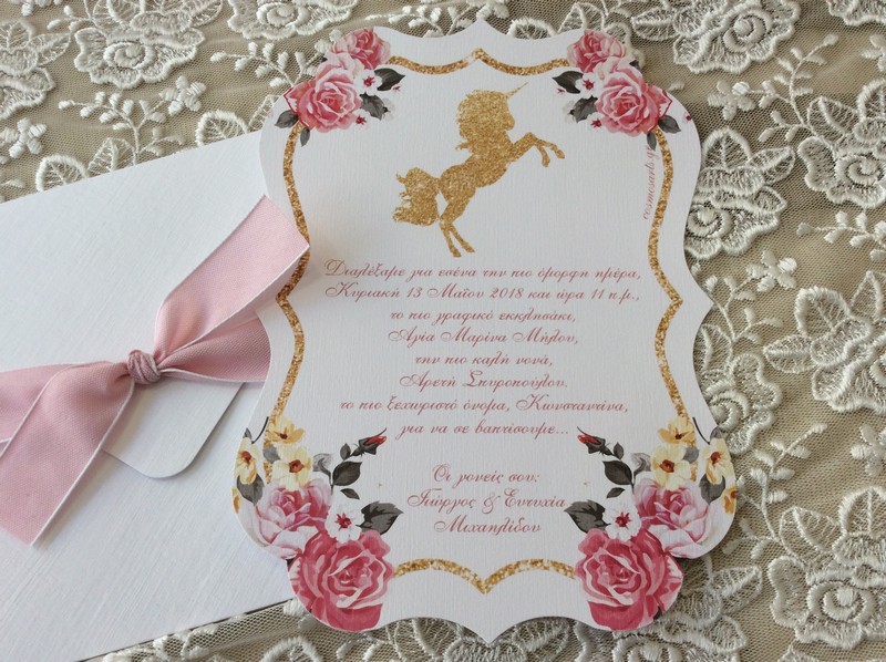 Προσκλητήριo Βάπτισης Μονόκερος -B1812